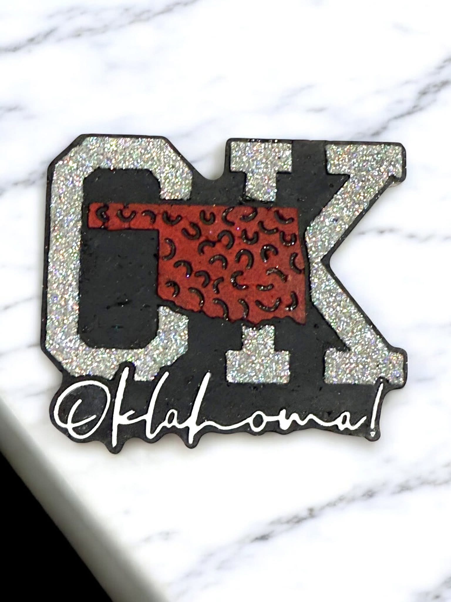 Show off your Oklahoma pride with this unique “OK State” Freshie! Featuring the iconic letters “OK” with the state in the center, it is a fun and stylish way to keep your car or space smelling fresh.